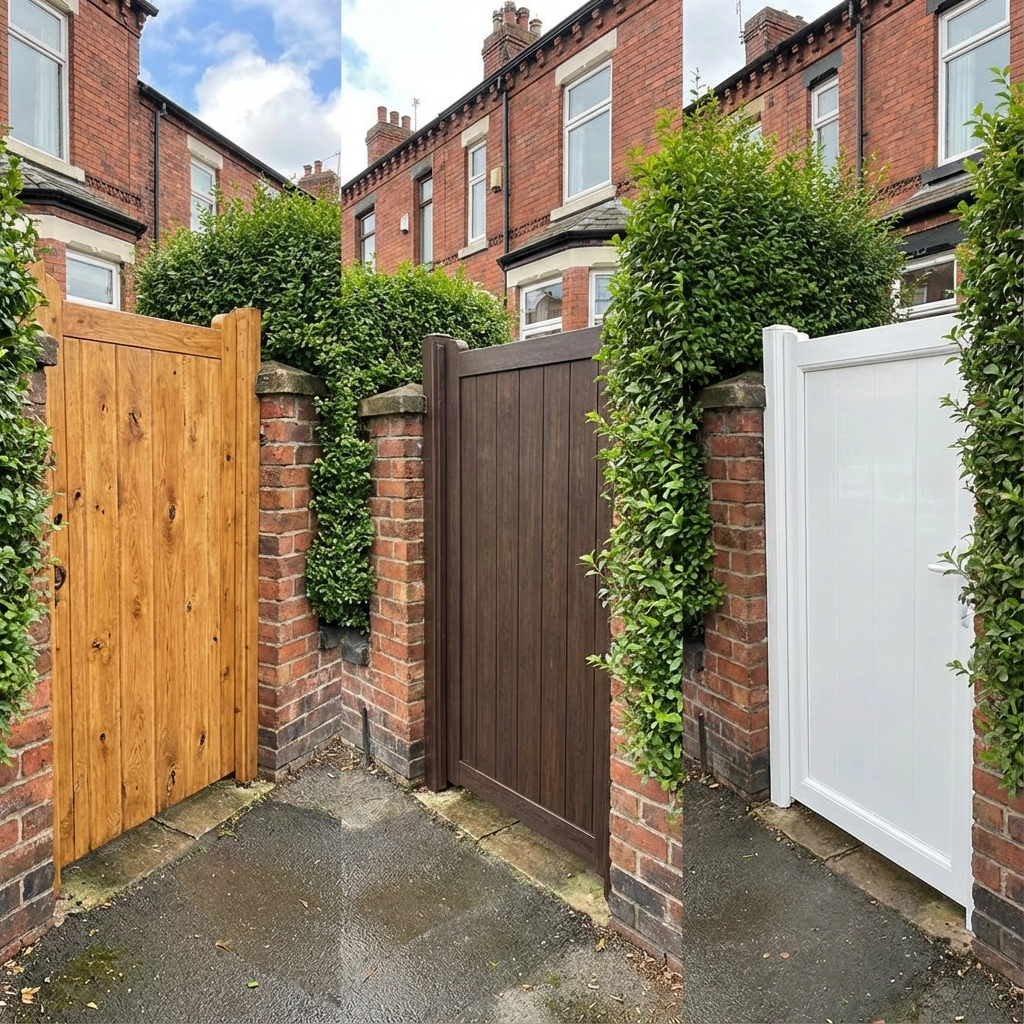UPVC Gates represent the most economical long-term choice. They're virtually maintenance-free and offer excellent weather resistance – particularly valuable in Manchester's variable climate. However, style options are more limited, and they may not suit period properties or conservation areas.